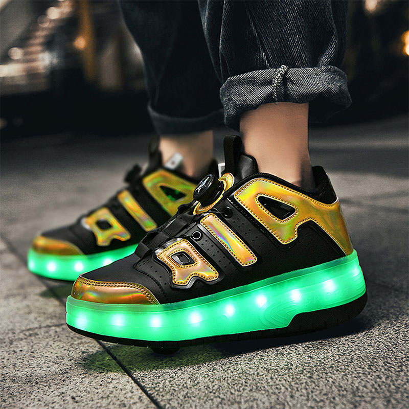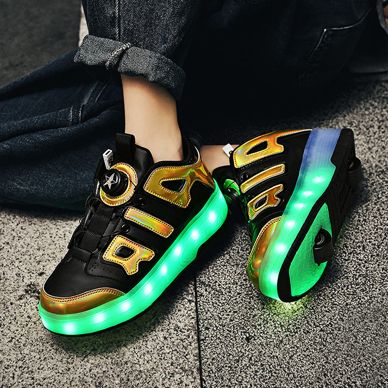AIR Black USB Rechargeable Skate LED Light up shoes with Removable Wheels X53