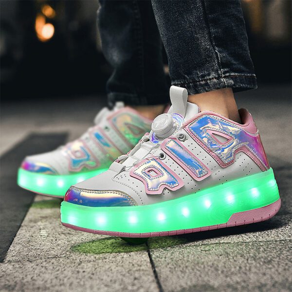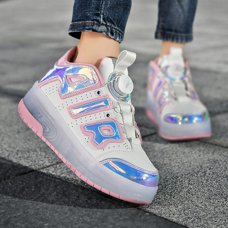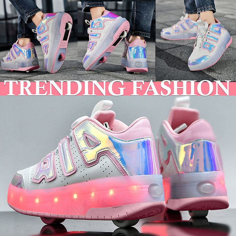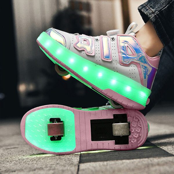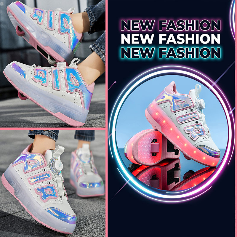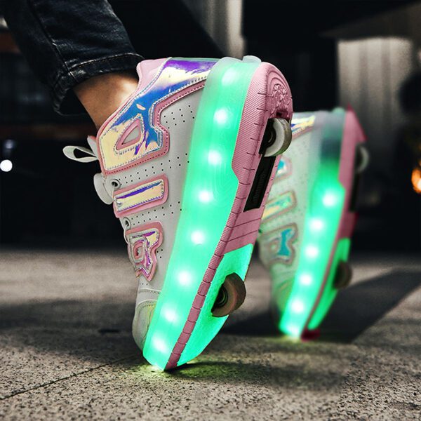 AIR Blue/Pink USB Rechargeable Skate LED Light up shoes with Removable Wheels X54