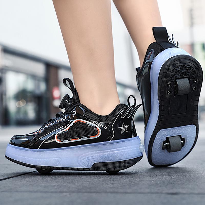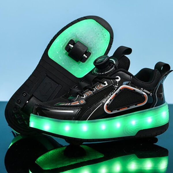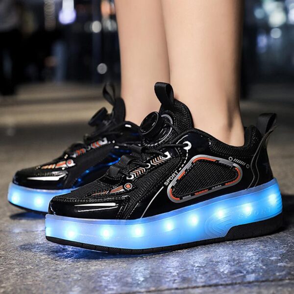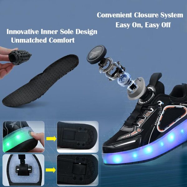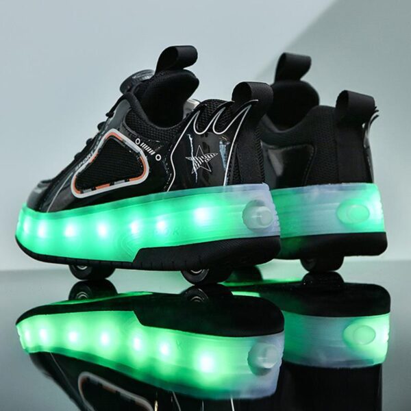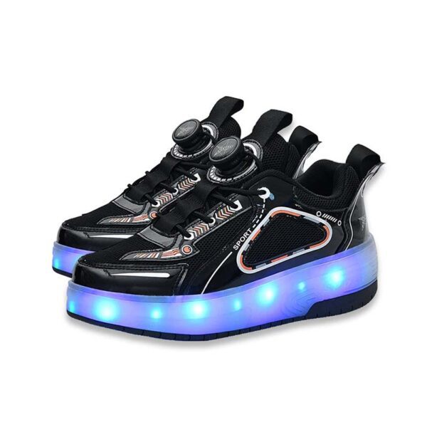Black USB Rechargeable Skate LED Light up shoes with Removable Wheels X5