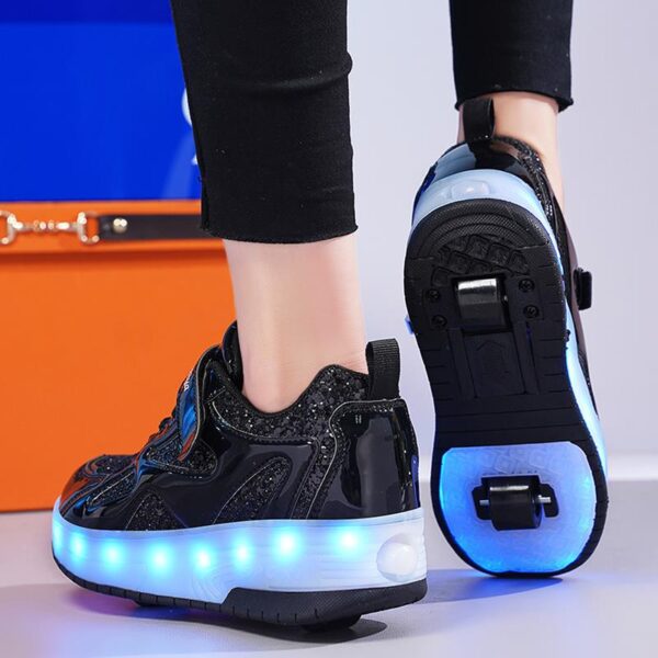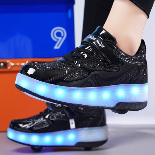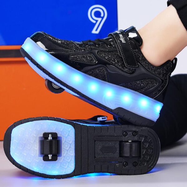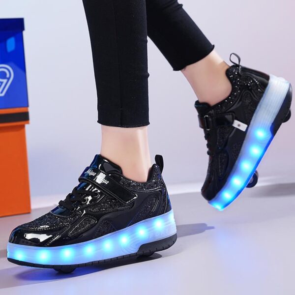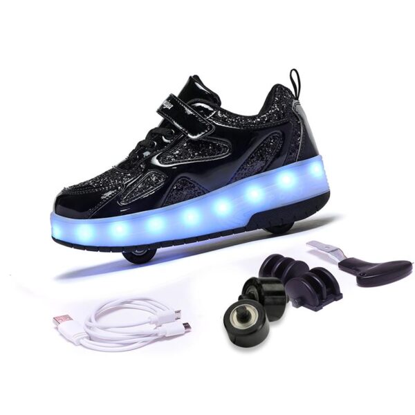 Black USB Rechargeable Skate LED Light up shoes with Removable Wheels