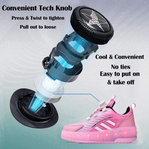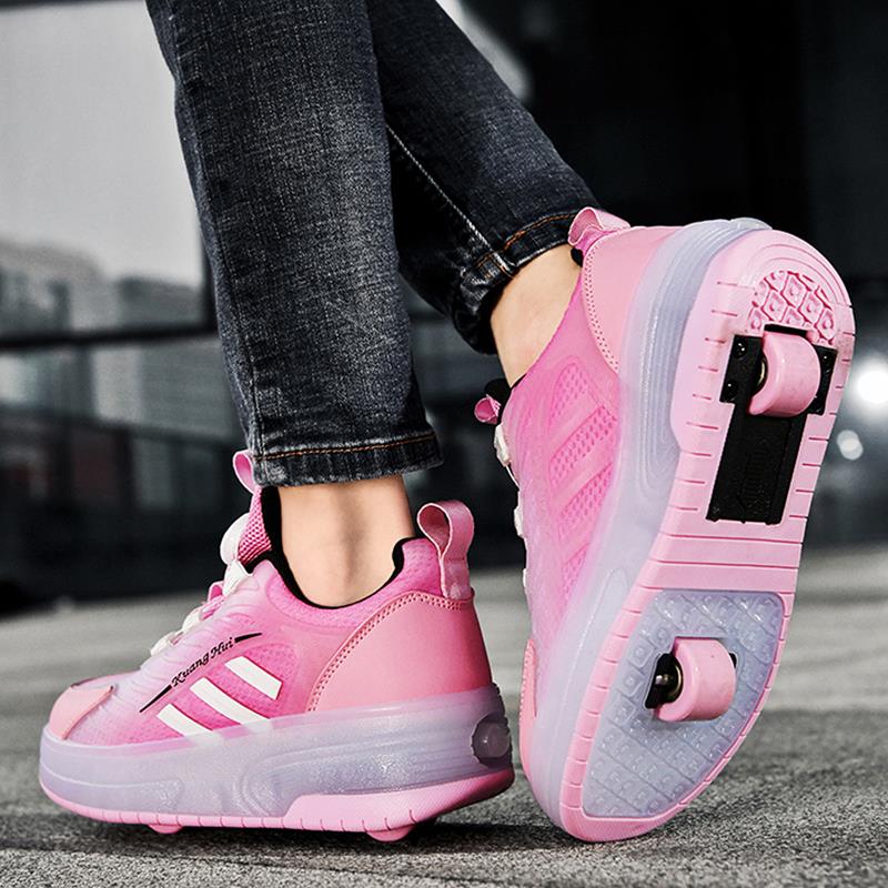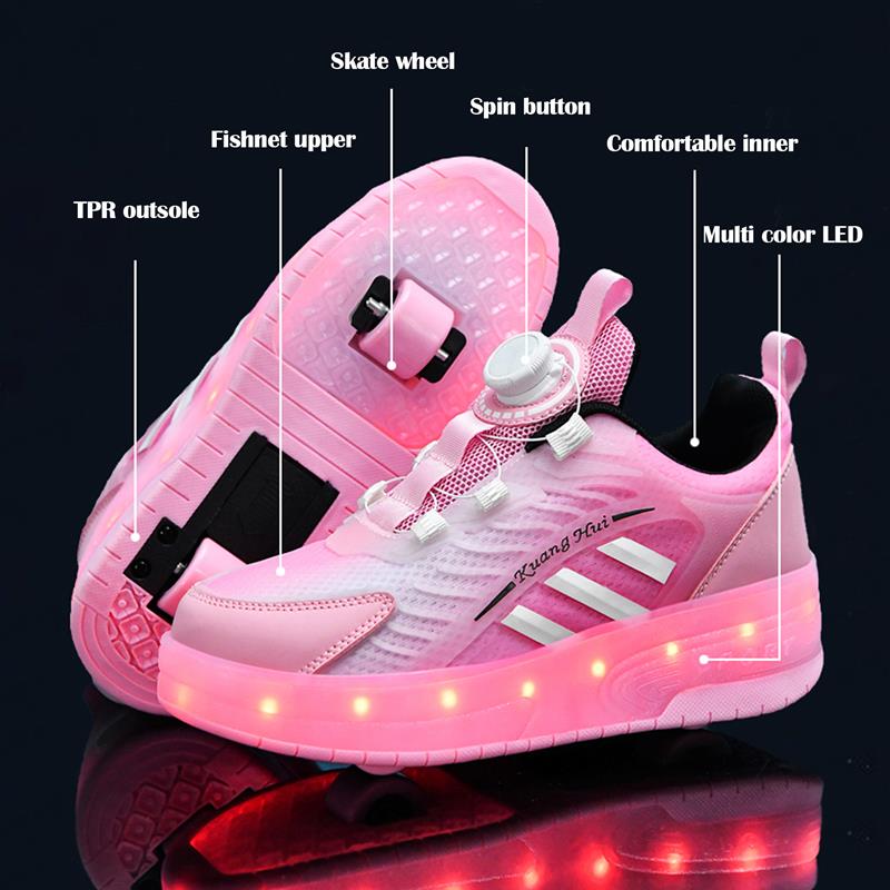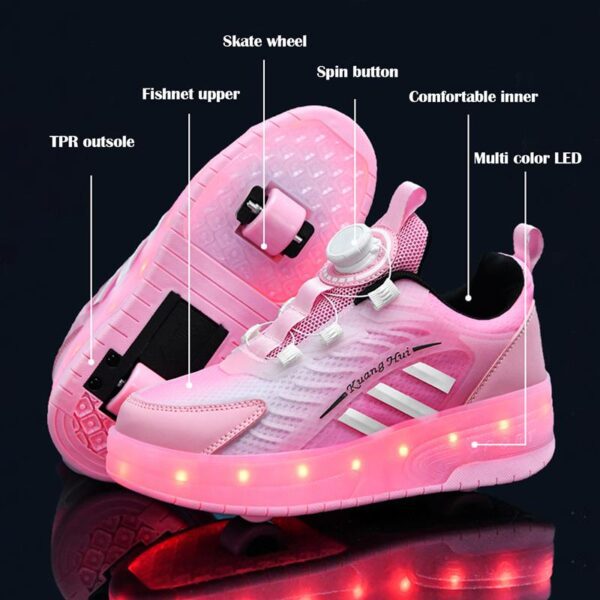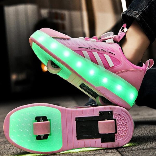 Pink USB Rechargeable Skate LED Light up shoes with Removable Wheels X4