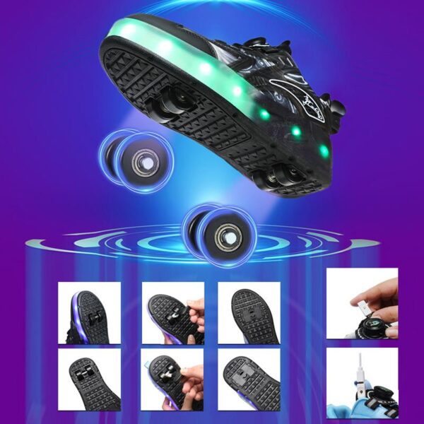 - ♥ 4-Wheels ♥ Four-wheeled shoes offer superior stability and safety compared to traditional two-wheeled shoes
