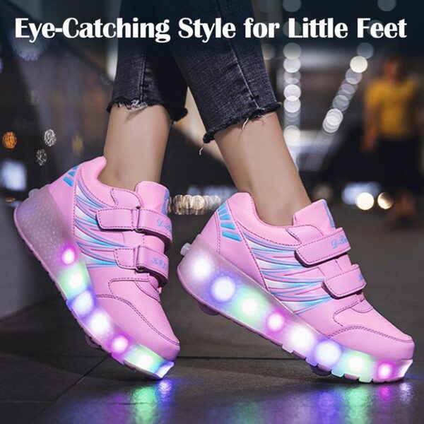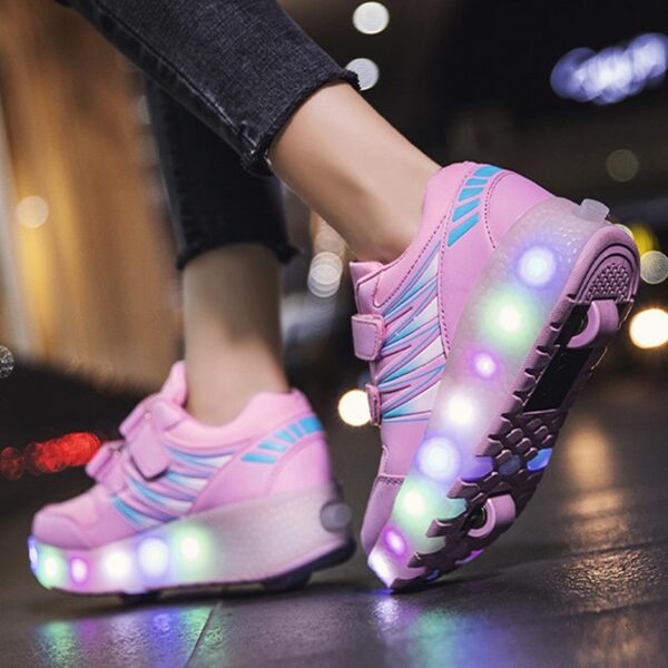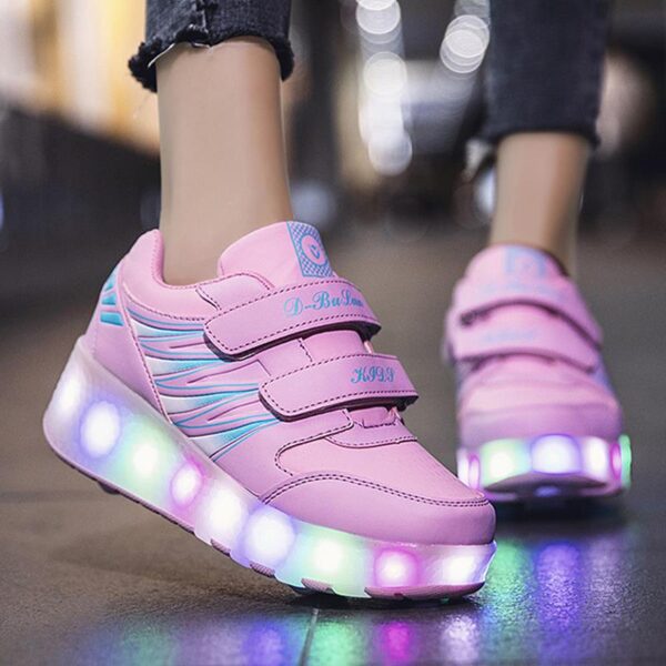 Pink USB Rechargeable Skate LED Light up shoes with Removable Wheels X13