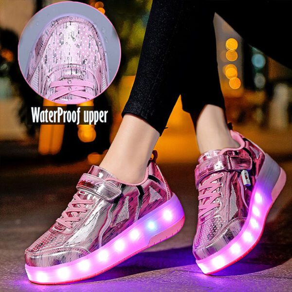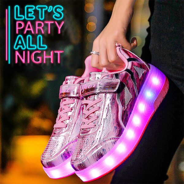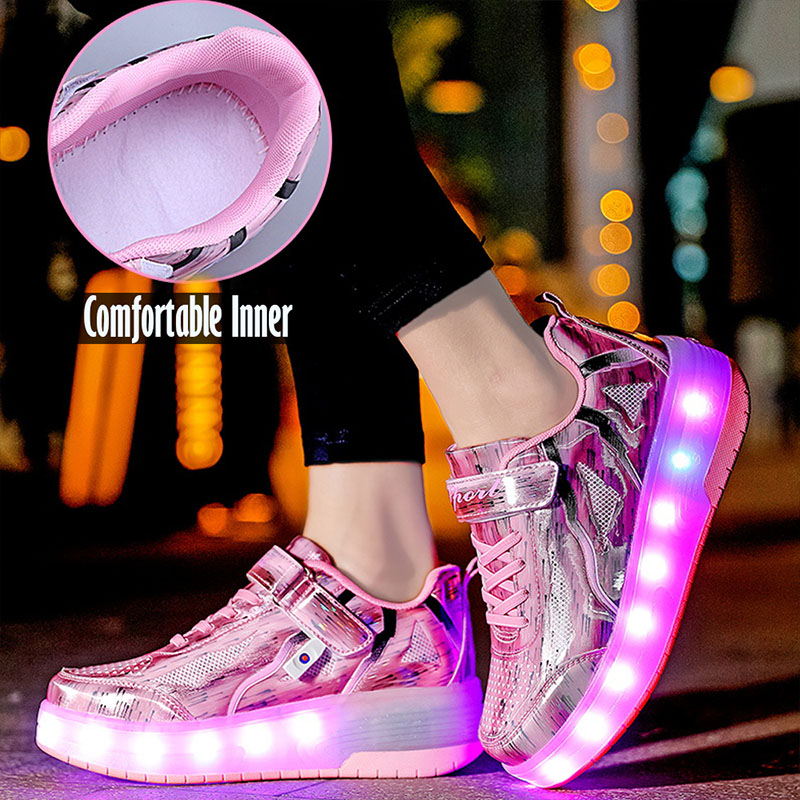 Pink USB Rechargeable Skate LED Light up shoes with Removable Wheels X57