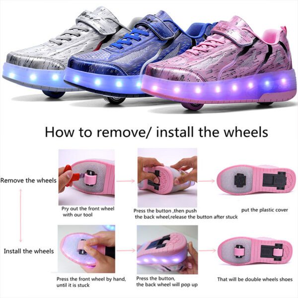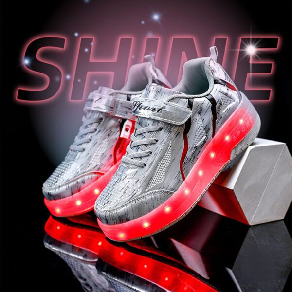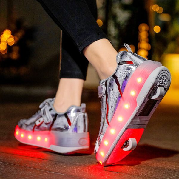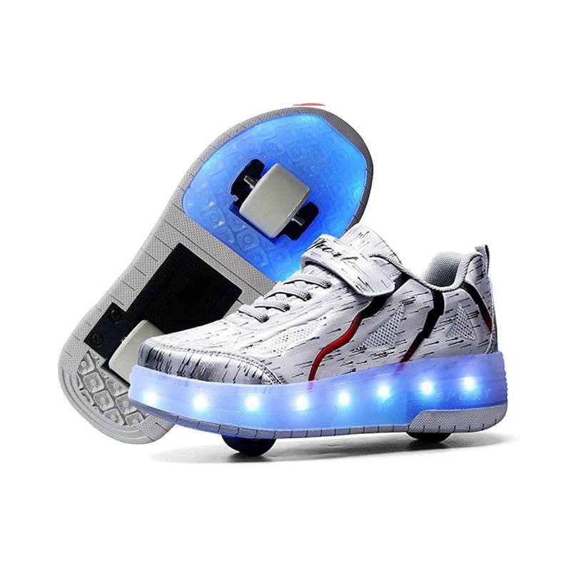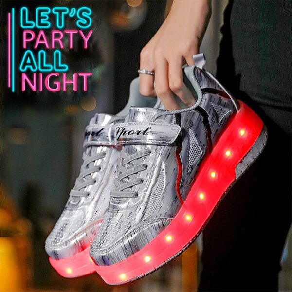 Silver USB Rechargeable Skate LED Light up shoes with Removable Wheels X55