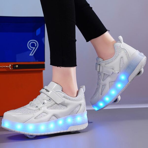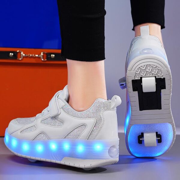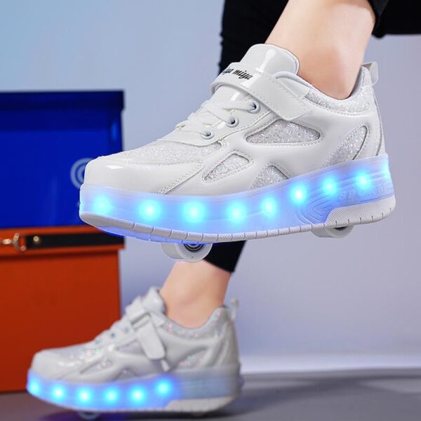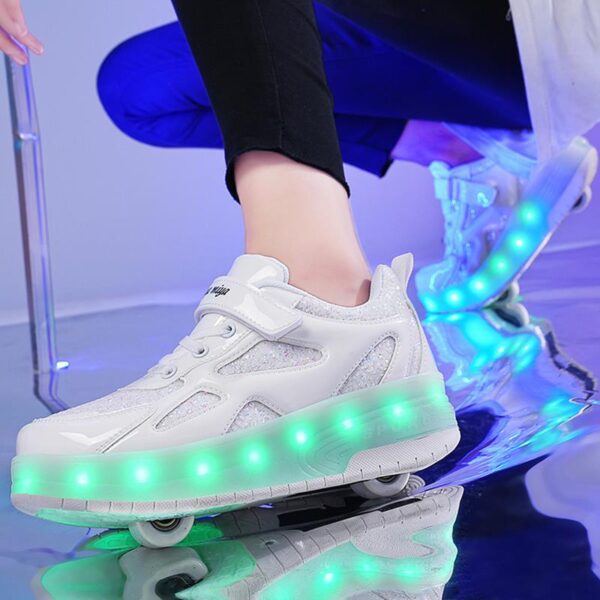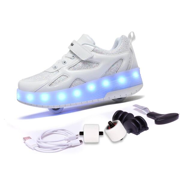White USB Rechargeable Skate LED Light up shoes with Removable Wheels